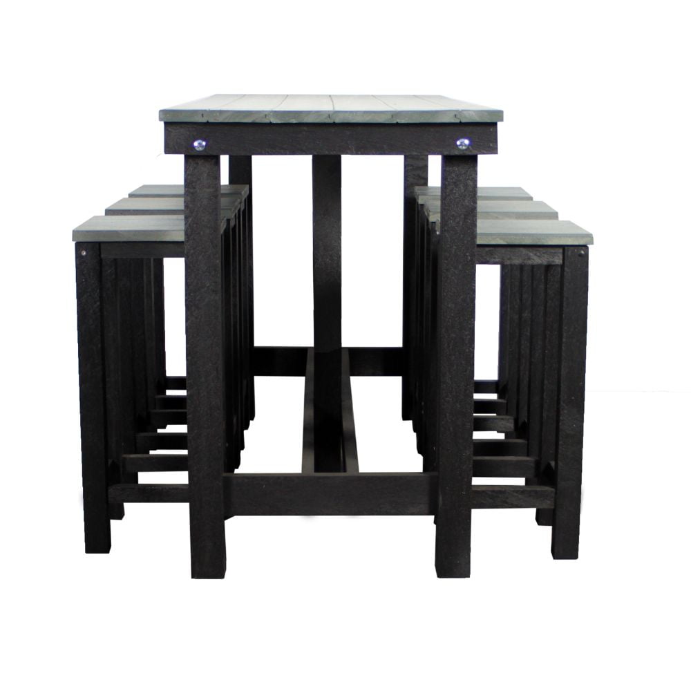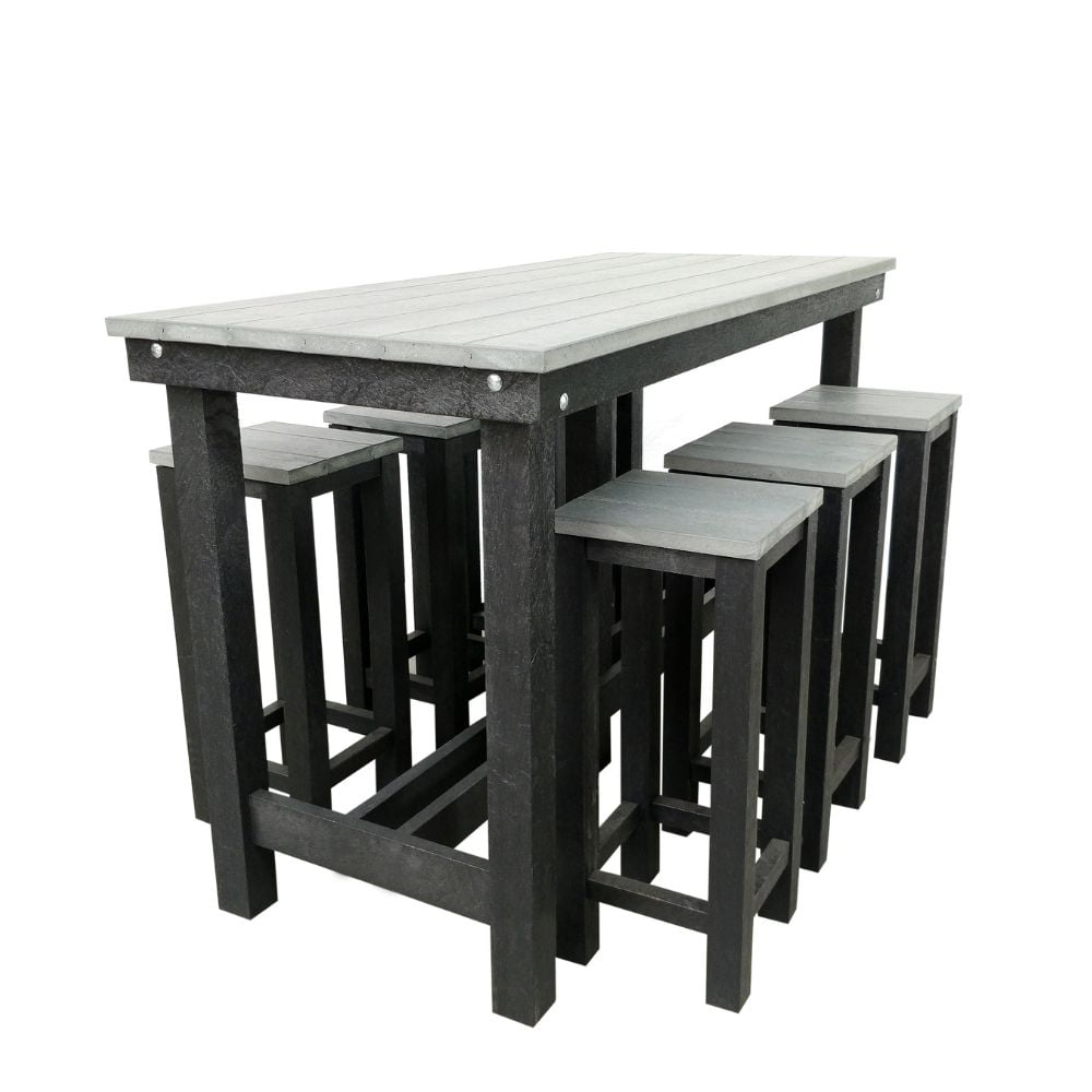 Moderne onderhoudsvrije duurzame bartafel gemaakt van massief kunststof. Alle producten van RUST. kan je heel het jaar buiten laten staan. Nooit meer onderhoud want het rot niet, verkleurd niet en vlekt niet. Elk moment van het jaar kunt u genieten van deze tafel en krukken.